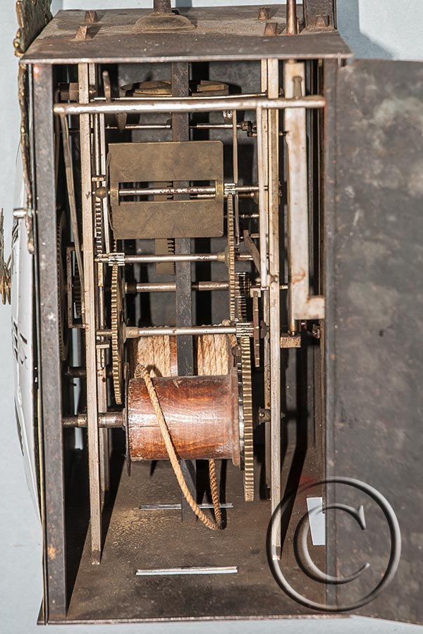Diese Comtoise-Uhr befindet sich noch im Fundzustand, unrevidiert. Pendel und Gewichte fehlen. Die Front wurde schon aufgearbeitet. Komplette fachgerechte Revision durch erfahrenen Uhrmacher-Meister und Komplettierung (Pendel, Gewichte, Schlüssel, Aufhänger) auf Wunsch